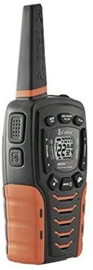 Meet the new Rugged-Ready 35 Mile Walkie Talkies from Cobra Electronics. Be prepared for storms and emergencies with built-in NOAA radio receiver. The built-in LED Flashlight and rubberized grips provide enhanced functionality to keep you on the go. VibrAlert notifies you of incoming transmissions with enhanced vibrating feedback. IPX4/JIS4 waterproof spec allows you to be ready for whatever mother nature can throw at you. Voice-activated transmission frees hands for other tasks. A total of 2662 channel combinations are available when the 22 channels are combined with the 121 privacy codes (38 CTCSS/83 DCS). The radios include rechargeable NiMH batteries and a two-port charging dock. May also be used with AA alkaline batteries.