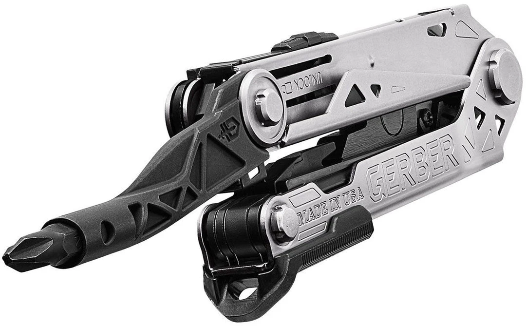 Gerber’s new multi-tool offers uncompromising performance through revolutionary design. The innovative center-axis driver opens to align like a real screw driver, yielding maximum torque and rotation. No productivity is sacrificed with the addition of a 30% longer outboard blade and one-thumb opening sliding jaws. Full size, real tools – the multi-tool just got a reality check.