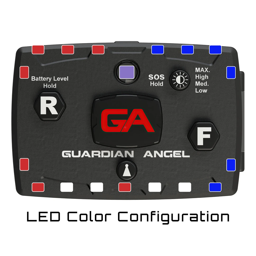 - Infrared LED Integration – Top of the device has a single 850 nano meter infrared LED which can be controlled independently from the rest of the LEDs on the device. To activate, hold the brightness setting button. Push again to turn off. The single IR LED will also activate when Emergency Mode (all lights on device flash) is activated.