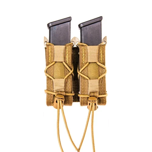 This versatile double pistol mag pouch can hold almost any caliber of pistol magazines, as well as multitools, small flashlights, pocket knives and more. The unique, patented design makes this the most versatile pistol mag pouch around.