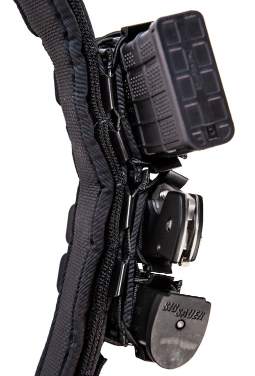 • Features additional layer of 1.5″ webbing to form industry-standard columns of MOLLE for use with MOLLE pouches and holsters