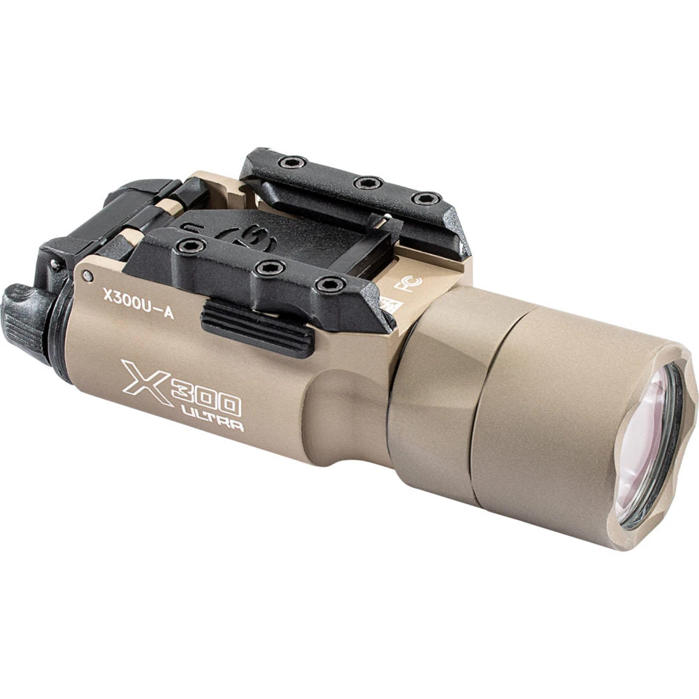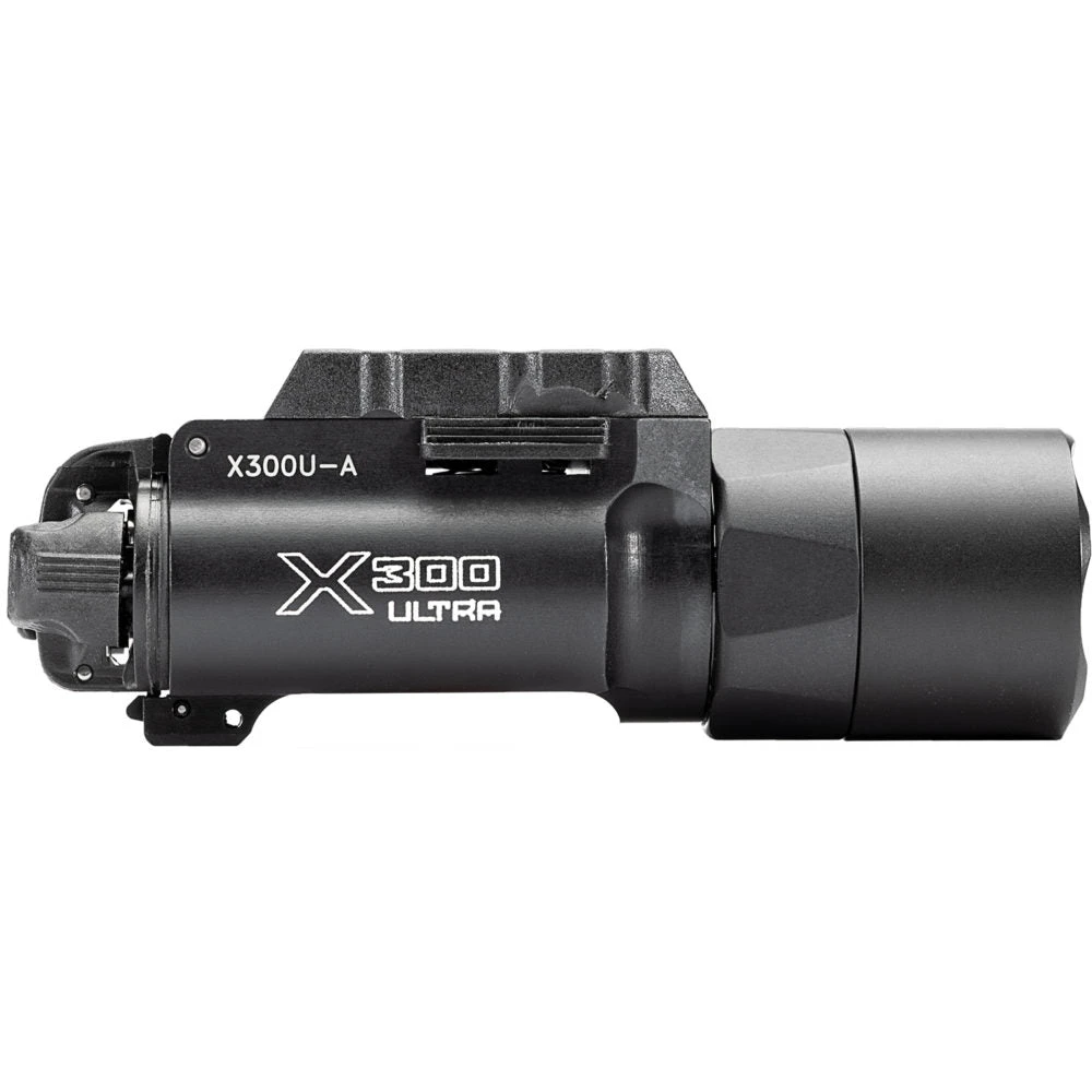 The powerful and versatile SureFire X300 Ultra WeaponLight for handguns and long guns features a high-performance LED that generates 1,000 lumens of stunning white light focused by a Total Internal Reflection (TIR) lens to produce a tight beam with extended reach and significant surround light for peripheral vision. The virtually indestructible and highly efficient LED generates tactical-level light—more than enough to overwhelm an aggressor’s dark-adapted vision—for 1.25 hours per set of batteries.