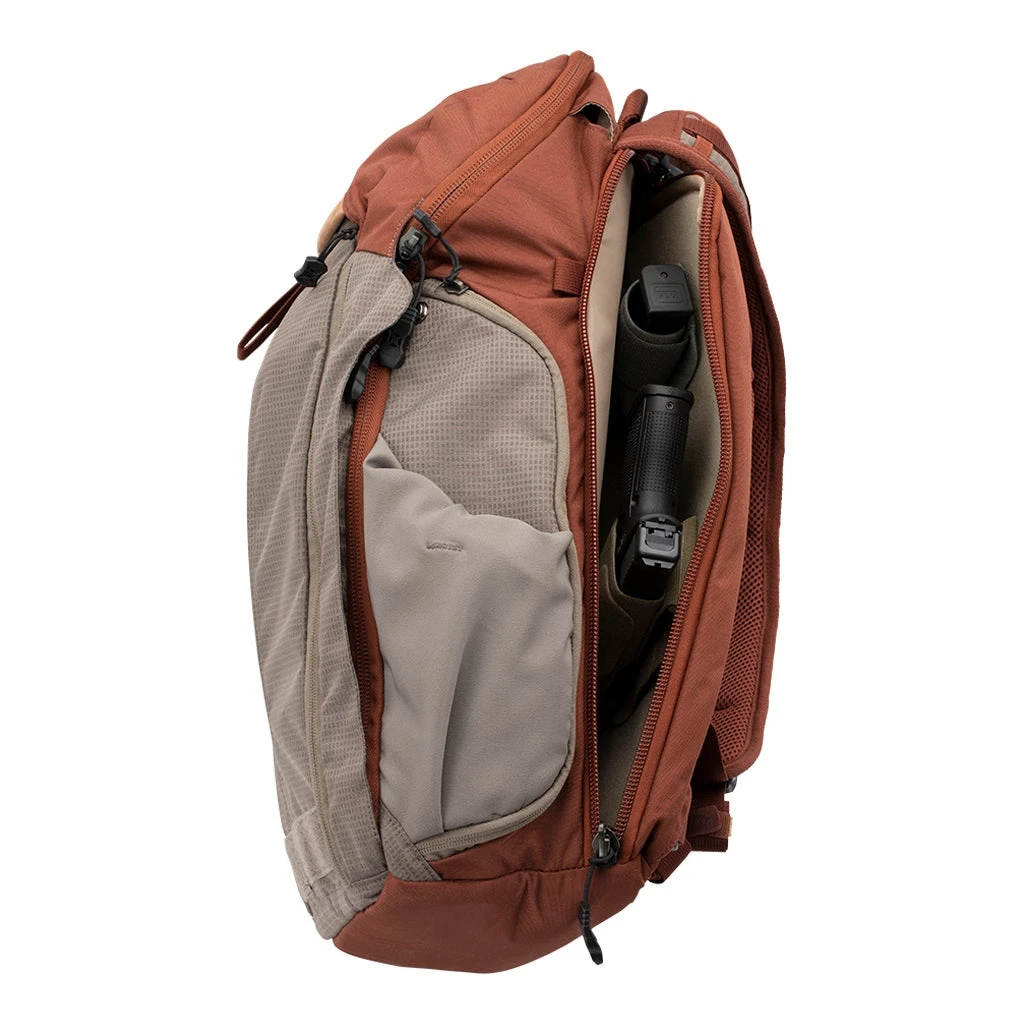 Tug the Hot-Pull Tab to access the PDW rifle discreetly carried in an adjustable print-proof scabbard that doubles as a laptop and sensitive gear sleeve. The Gamut Backpack front flap can be configured as an external sling to carry larger items while your laptop stays snuggled in its dedicated sleeve. Loads of internal and external slots and pockets keep all your gear secure, organized and where you expect it to be when you need it.