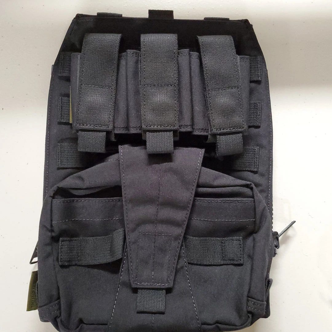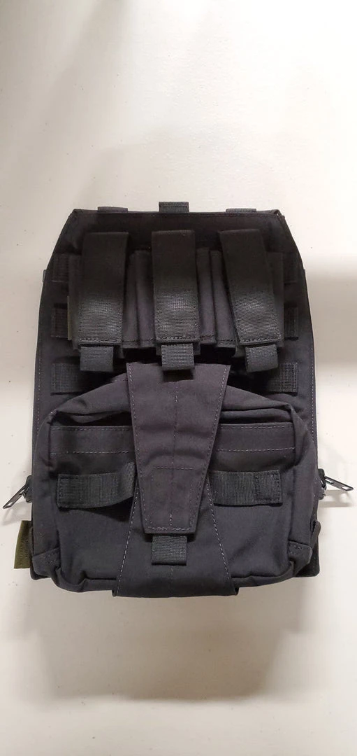 The top section of the ABP panel comes with our adjustable Triple 40mm pouch, ideal for storage of stun grenades or baton rounds. The lower section has a removable General Purpose / Rip Off Medic Pouch. The Assaulters Panel comes with an internal hydration compartment and a pull out lower pocket for carriage of MOE gear such as, expandable hammers, hooligan bars and bolt cutters.