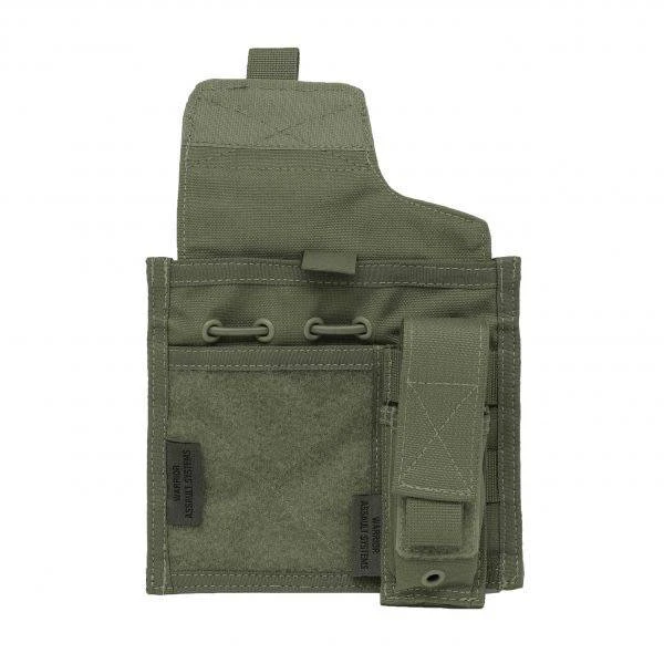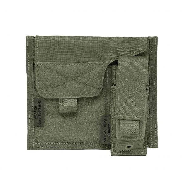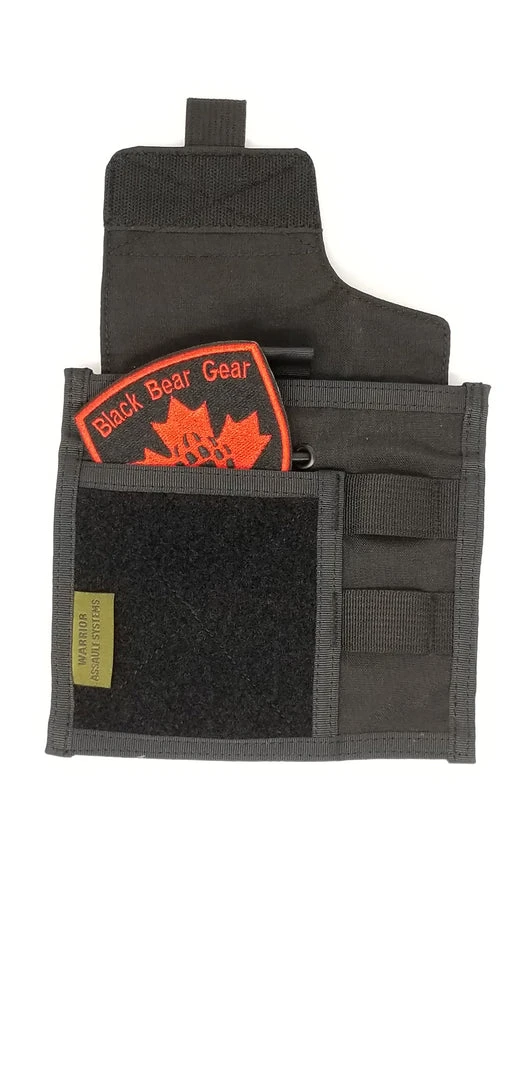 Warriors Admin Panel has an external cover with Velcro for Flags, IDs etc, the flap can be lifted to access 2 pockets one with elastic loops at the top to hold Cylons, IR Markers Pens etc.