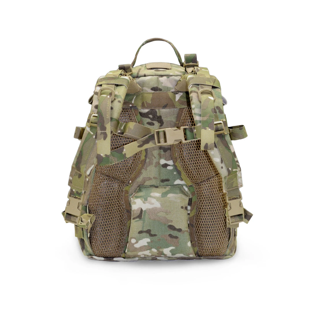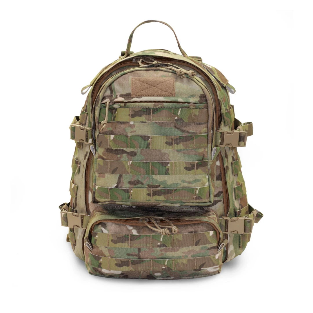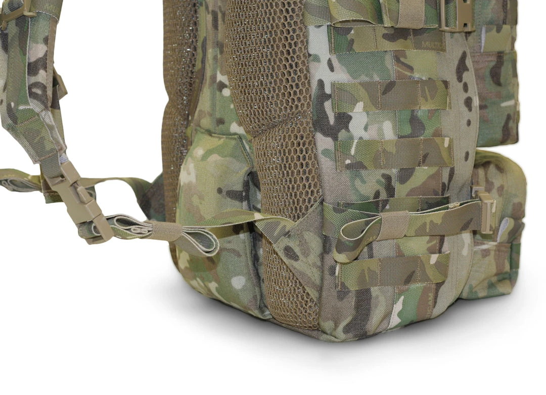 The Pegasus Pack is the baby brother to the best selling Predator pack. It also features the “Clamshell” fully extended opening of the main compartment. IT comes with a padded lumbar support featuring 3D Spacer Mesh. The inside compartment features 3 zipped mesh pockets on the inside of the lid for storage while the outside has small and large cargo pouch pockets to facilitate quick access to smaller mission critical items. Internally there is a hydration sleeve which has webbing sewn on in order to allow the attachment of various pouches when required. The top of the pack features Antenna and Hydration tube ports either side of the heavy duty carry handle.