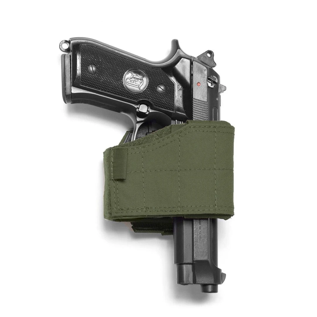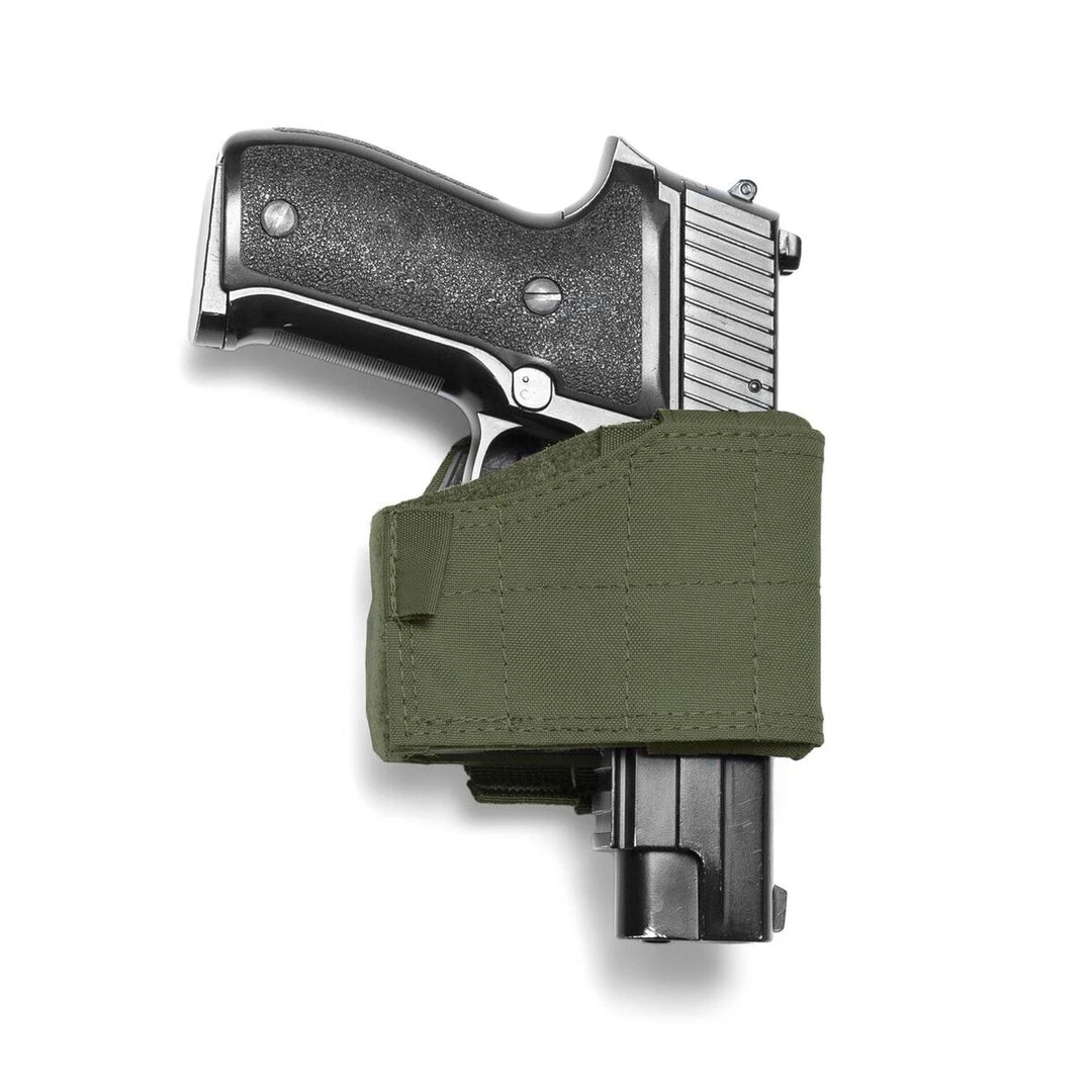 The Universal Pistol Holster is a versatile adaptable holster that fully adjusts to accomodate a wide variety of large and small frame pistols.