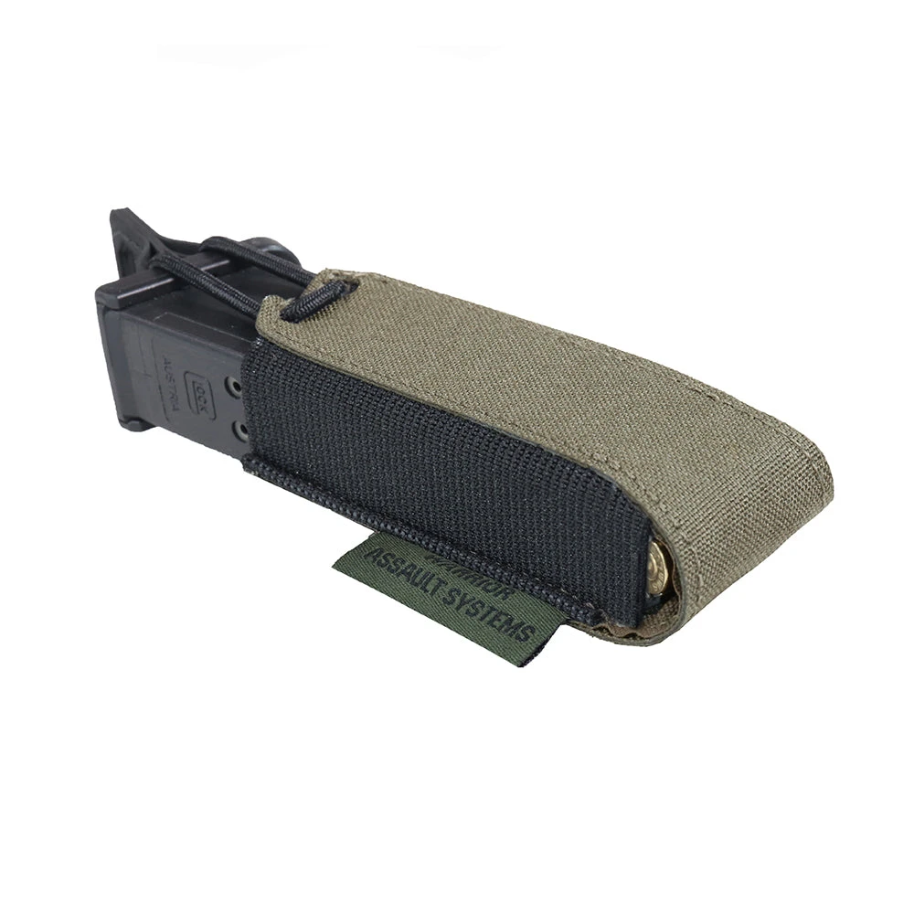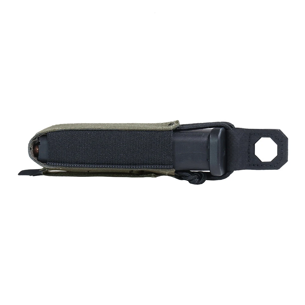 Our Laser Cut Single Bungee Pistol Mag Pouch can be belt mounted or attached to any carrier in the Warrior range. Holds most standard 9mm, and .40 Cal pistol mags. Made using Double layered Mil-Spec elastic and laminate to produce an extremely compact design, with Hypalon coated pull tab for extra grip.