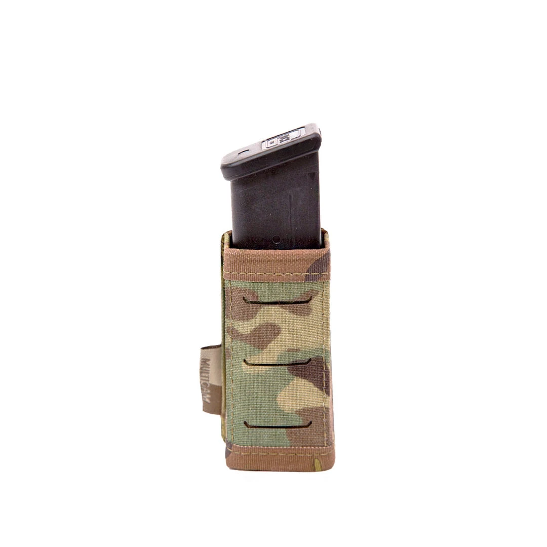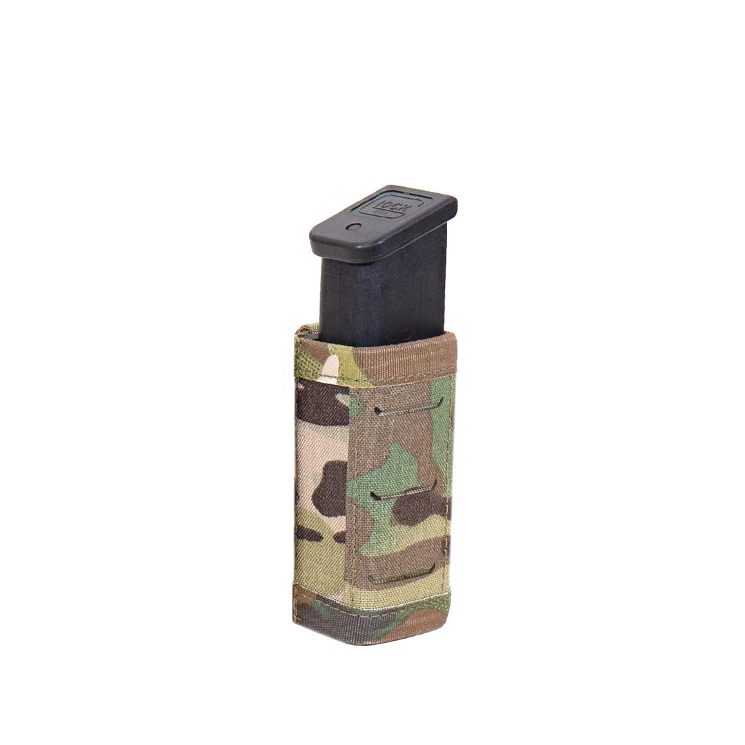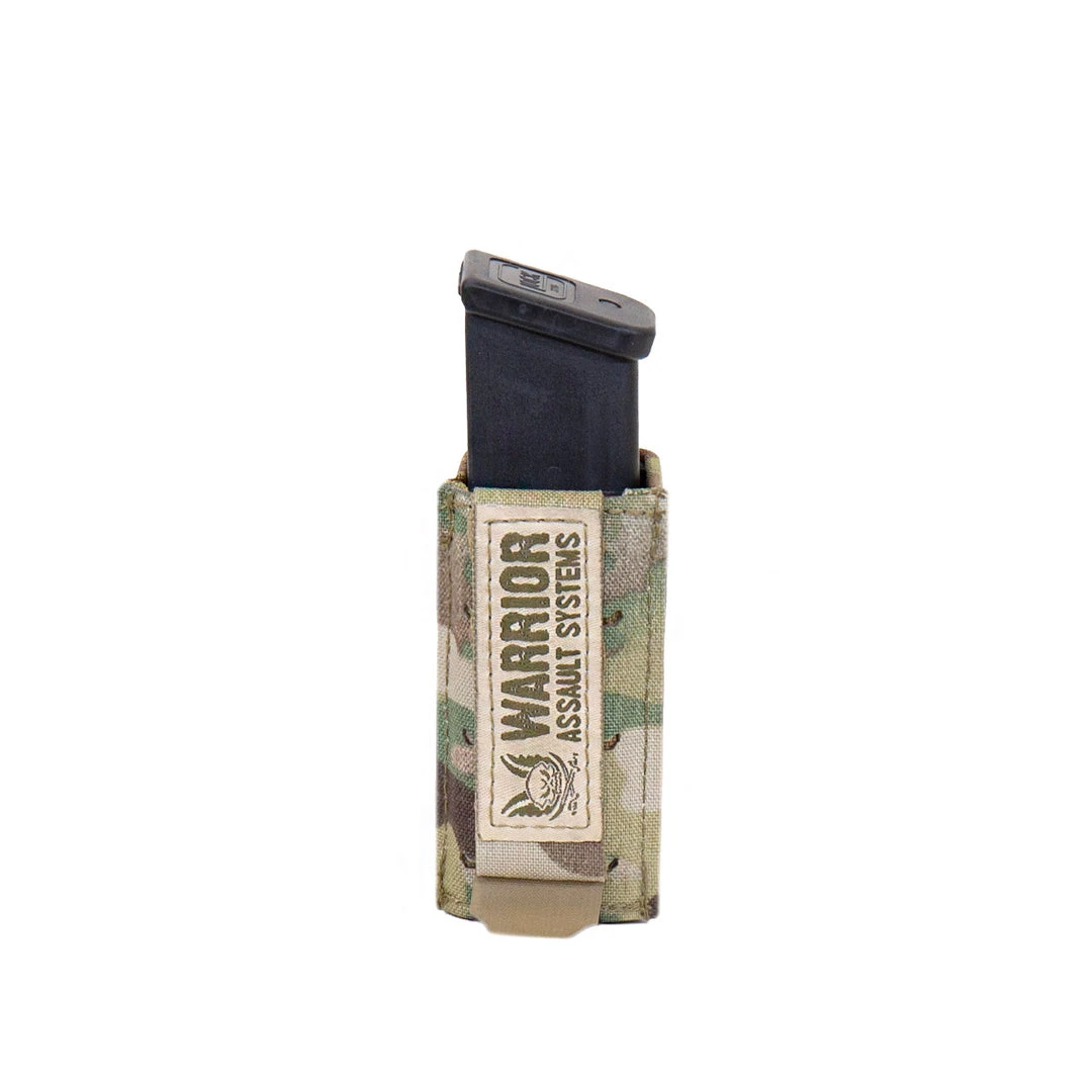 Warrior Laser Cut Single Snap Mag Pouch 9 mm is designed to hold 1 x 9 mm magazine, which is held in place by a thermoplastic sleeve, allowing strong retention with the advantage of single pull mag draw, for fast dynamic reloads. Ideal for attachment to belts but equally at home on any Plate Carrier or Chest Rig. Attaches via a single laser-cut MOLLE arm at the rear of the pouch.