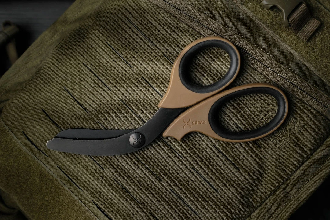 - Hardened stainless steel blades that are twice as thick as most trauma shears, sharpened to a razor edge.